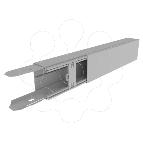 Calha Unex 60X90 em U23X. Perfil para distribuição de cabos com tampa exterior, apto para uso em intempérie. Tem compartimentação flexível para a condução e proteção de cabos elétricos e de comunicações. A base é perfurada a cada 250mm. Com a calha, é fornecida uma ponte a cada 0,5m e duas uniões. Estas peças vêm pré-montadas. Comprimento: 3m. Recomendadas ITED. Segurança: mecânica (proteção contra impactos IK10), elétrica (material isolante, IP4X montada na parede) e em caso de incêndio (ensaio do fio incandescente a 960 °C, não propagador da chama). A montagem da tampa realiza-se à pressão (não é necessário deslizar para montar). A ponte retém os cabos assegurando a fixação da tampa nos casos mais exigentes. As uniões unem mecanicamente os troços da calha garantindo a sua perfeita alienação, facilitando a montagem e fixação das bases sobre a superfície. Tanto a calha como os elementos de acabamento podem pintar-se. Separador móvel com montagem frontal. Cor: Cinzento RAL 7035.