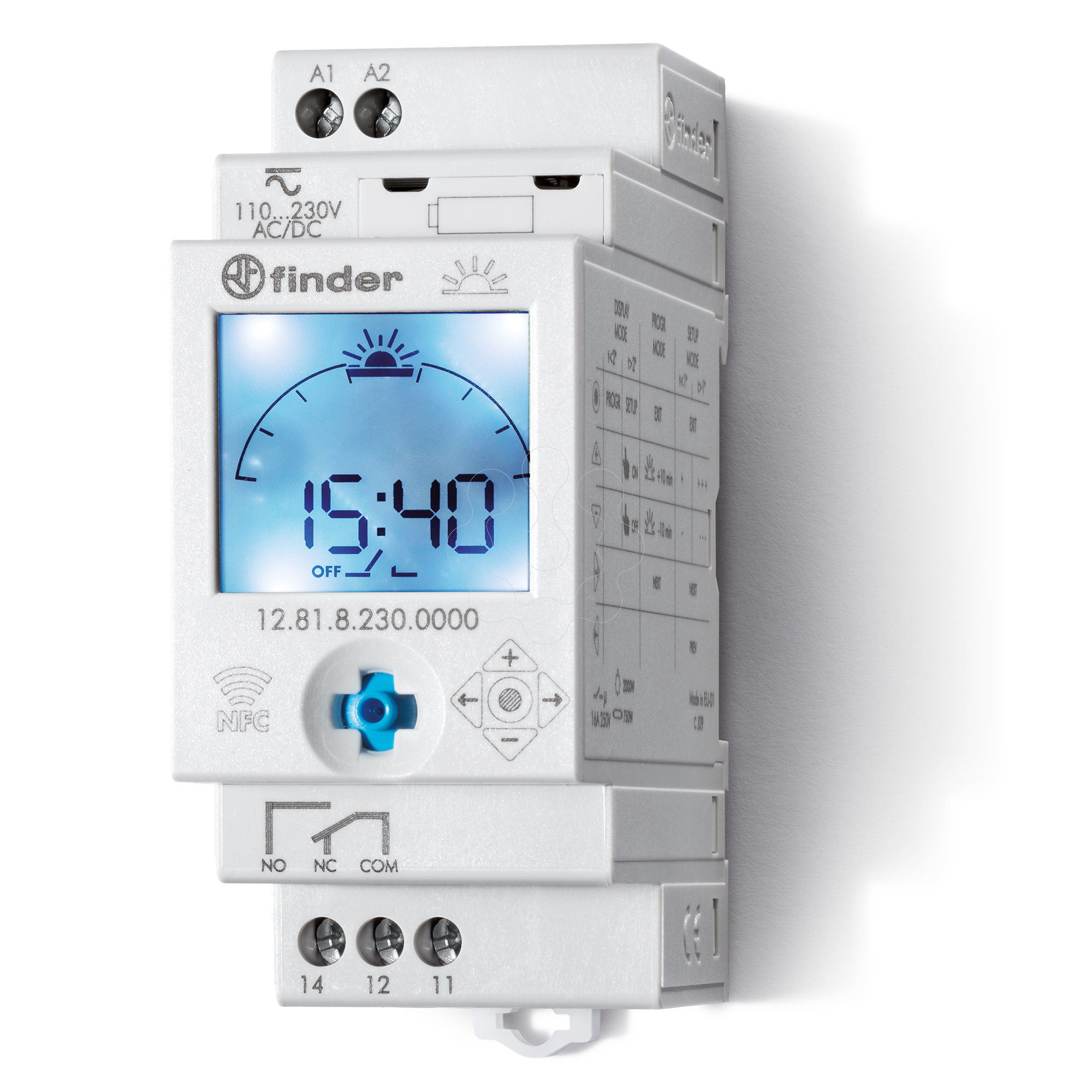 Programador horário/astronômico Nr.contato: 1 reversível Material dos contatos: AgSnO2 Método de montagem: Calha DIN Programa astronómico: sim Número de canais: 1 Com comando à distância: sim Programa semanal: sim Programa anual: não GPS (sistema de posicionamento global): não Largura em número de módulos: 2 Programa de 60 min: não Programa 24 horas: sim Programa de férias: não Programa de ciclo: sim Rede síncrona: não Controlado por quartzo: sim Mudança automática de verão/inverno: sim Operação manual: sim Tipo de tensão de alimentação: AC/DC Contato livre de potencial: sim Programação externa: sim Controlado por rádio (DCF77): não Tensão de alimentação: de 110 a 230 V. Frequência da tensão de alimentação: de 50 a 60 Hz. Autonomia em anos: 6 Corrente nominal de comutação a 250 V CA: 16 A. Orientação do texto no ecrã: sim Grau de proteção (IP): IP20
