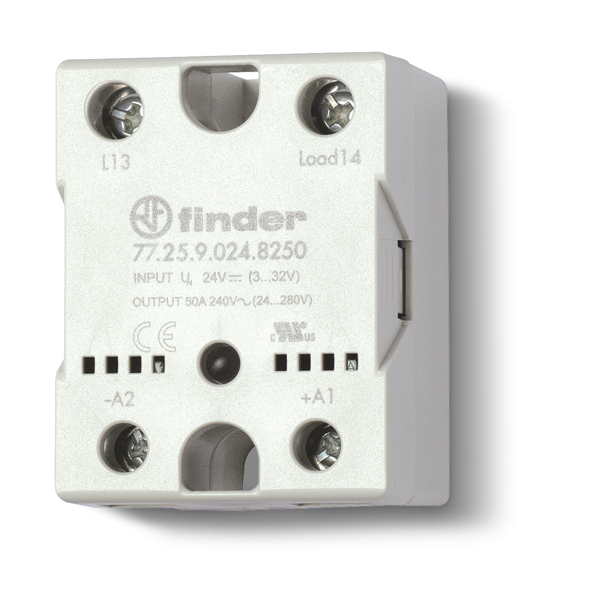 Relé de estado sólido para painel Nr.contato: 1 NA Número de fases: 1 Versão modular: sim Tensão de alimentação de corrente nominal de 50 Hz AC: 24 V. Tensão de alimentação de corrente nominal DC: 24 V. Tensão de funcionamento: de 21.6 a 280 V. Corrente nominal de operação em AC-1: 25 A. Tipo de tensão para atuação: DC Comutação no cruzamento zero: sim acessórios: Dissipador de calor