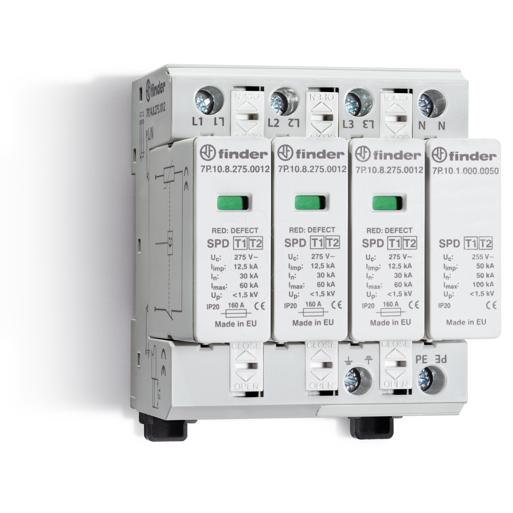 Dispositivo de Proteção contra Surtos Método de montagem: Perfil DIN 35 mm Com contato de sinalização remota: sim Número de condutores (Sem aterramento): 4 Tamanho: 4 espAços modulares Tensão máxima contínua AC: 275 V. Corrente de descarga nominal (8/20): 30 kA. Tensão nominal CA: 230 V. Ensaio de categoria tipo 2: não Nível de proteção L-N: 1.2 kV. Sinalização no nível do dispositivo: Ótico Máxima tensão DC contínua: 350 V. Grau de proteção (IP): IP20 Nível de proteção de tensão N-PE: 1.5 kV. Fusível de backup integrado: não Esquema de ligação DC: não Esquema de ligação TI: não Esquema de ligação TN: não Esquema de ligação TN-C: não Esquema de ligação TN-S: sim Esquema de ligação TT: sim Configuração de outro esquema de ligação: não Esquema de ligação TN-C-S: não Corrente de choque de descarga máxima (8/20): 60 kA. Resistência a curto-circuito (Isccr): 50 kA.