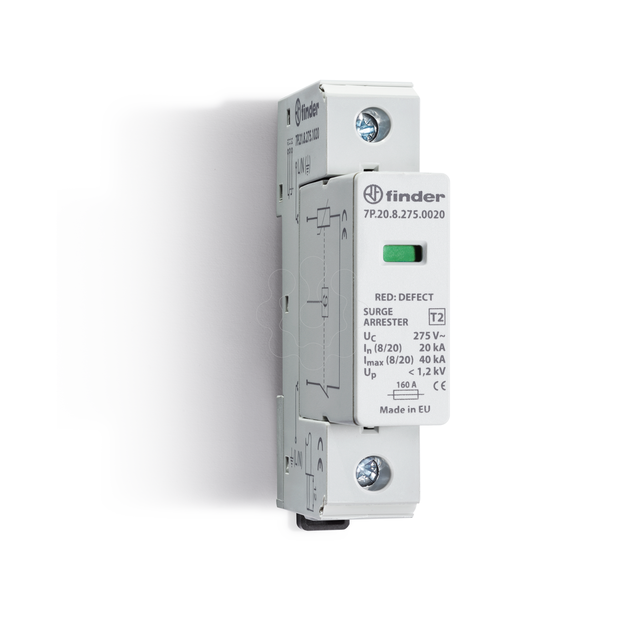 Dispositivo de Proteção contra Surtos Método de montagem: Perfil DIN 35 mm Com contato de sinalização remota: sim Número de condutores (Sem aterramento): 1 Tamanho: 1 espaço modular Tensão máxima contínua AC: 130 V. Corrente de descarga nominal (8/20): 15 kA. Tensão nominal CA: 110 V. Tensão nominal DC: 125 V. Ensaio de categoria tipo 2: sim Nível de proteção L-N: 0.6 kV. Sinalização no nível do dispositivo: Ótico Máxima tensão DC contínua: 170 V. Grau de proteção (IP): IP20 Nível de proteção de tensão N-PE: 0.6 kV. Fusível de backup integrado: não Esquema de ligação DC: não Esquema de ligação TI: não Esquema de ligação TN: sim Esquema de ligação TN-C: sim Esquema de ligação TN-S: sim Esquema de ligação TT: não Configuração de outro esquema de ligação: não Esquema de ligação TN-C-S: sim Corrente de choque de descarga máxima (8/20): 40 kA. Resistência a curto-circuito (Isccr): 50 kA.