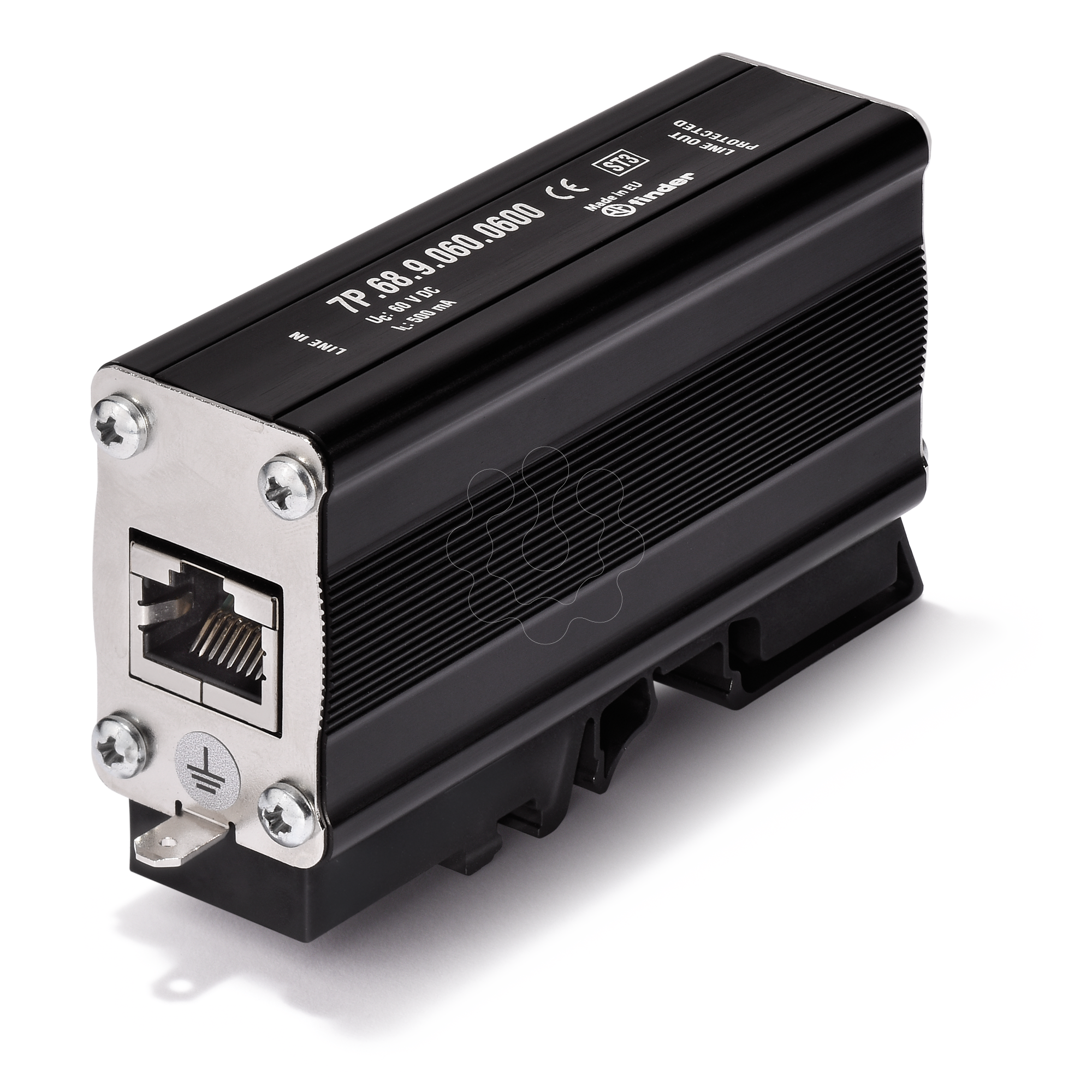Dispositivo de Proteção contra Surtos Método de montagem: Perfil DIN 35 mm Conexão 1: RJ45 Com contato de sinalização remota: não Frequência limite: 250 MHz. Acabamento antideflagrante: não Corrente de descarga nominal (8/20): 0.2 kA. Corrente de carga nominal: 0.5 A. Condutor/nível de proteção do condutor: 40 V. Nível de proteção do condutor/terra: 350 V. Sinalização no nível do dispositivo: Nenhum Máxima tensão DC contínua: 60 V. Tensão nominal DC: de 48 a 24 V. Vigilância de surtos atmosféricos: não Grau de proteção (IP): IP20