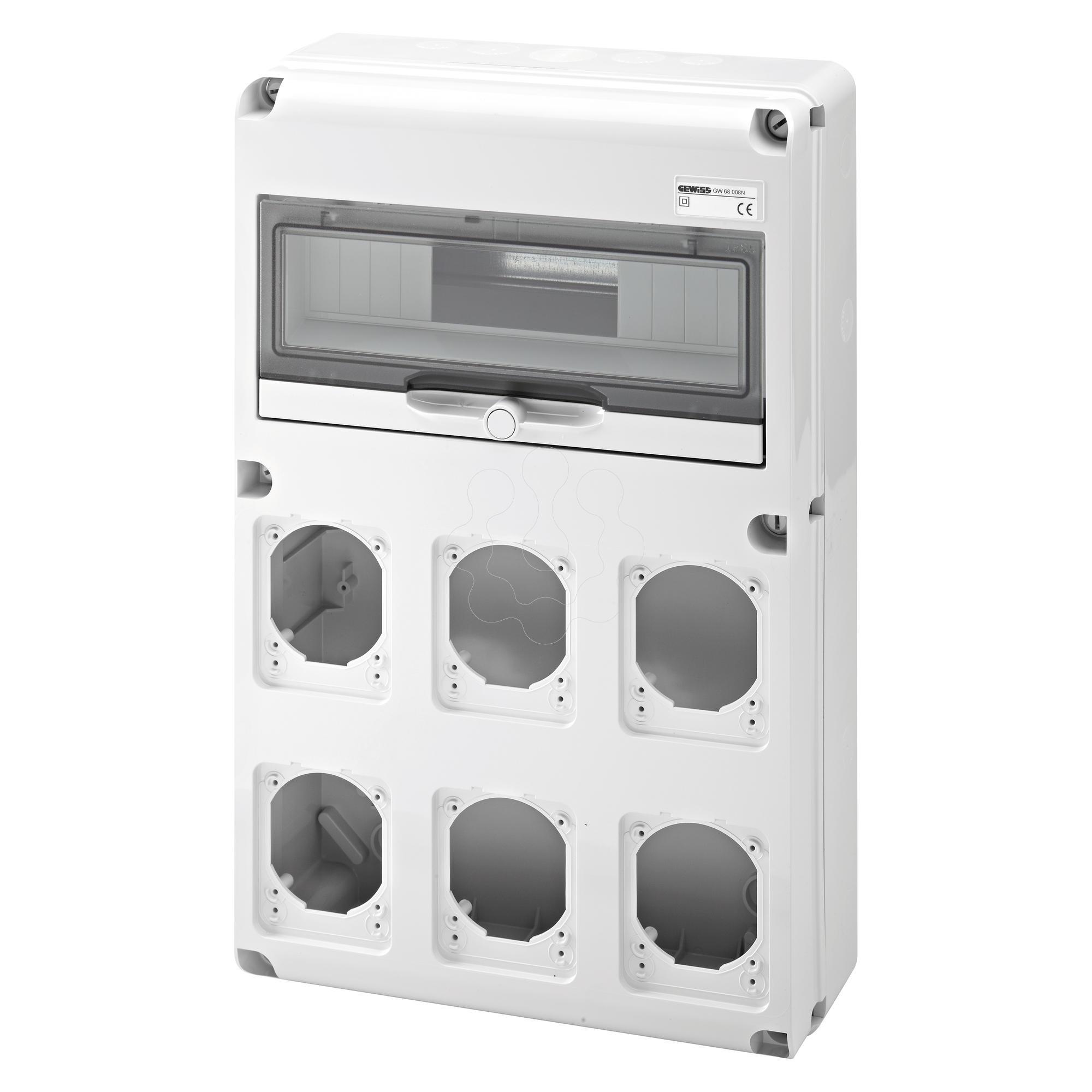 Série 68 Q-DIN - Quadros de distribuição - Sistema completo de quadros elétricos IP65 para a distribuição de energia nos sectores terciário, industrial e de estaleiro, disponível nas versões em vazio e com fios, de acordo com a norma internacional IEC 61439. A gama Q-DIN é composta por quadros elétricos de 5 a 20 módulos DIN e módulos adicionais de 14M e 20M para obter mais espaço DIN. Permitem o alojamento de tomadas encastradas e encravadas até 63A e são amplamente equipadas com acessórios.