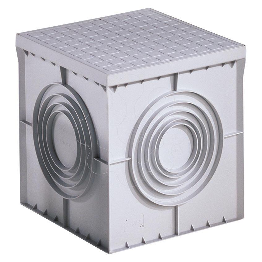 Séries FU e PZ - Sistemas de calhas e caixas de visita subterrâneas - A gama de caixas de visita PZ, disponível em 5 tamanhos, é ideal para junções e pontos intermédios em instalações elétricas e de telecomunicações. Estão equipadas com pré-cortes para a entrada de tubos e um fundo amovível, útil em caso de sobreposição. A construção em termoplástico, os pré-cortes para a entrada e o fundo dos tubos e a possibilidade de sobrepor vários deles, fazem da gama PZ uma alternativa válida às caixas de betão clássicas, garantindo ao mesmo tempo uma excelente resistência e desempenho ao longo do tempo.