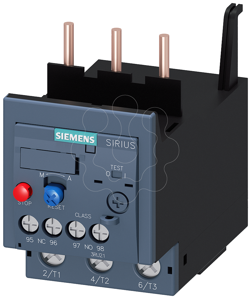 Relé de sobrecarga 1,8-2,5A Proteção do motor S00, Class 10, montagem em contator. Relé de sobrecarga 1,8...2,5 A térmico para proteção de motor tamanho S00, classe 10 montagem em contator circuito principal: parafuso circuito auxiliar: parafuso Reset manual automático relé de sobrecarga térmico SIRIUS 3RU2 para a proteção dependente da corrente de consumidores com arranque normal, contra um aquecimento elevado inadmissível como resultado de uma sobrecarga ou de uma falha de fase.Esta série é particularmente flexível e económica. Aprovações mundiais (por exemplo, IEC e UL/CSA) e implementações em aplicações potencialmente explosivas (ATEX ou IEC Ex) são um dado adquirido.Disponível com diferentes intervalos de regulação do disparador de sobrecarga. Disponíveis com ligação roscada ou por borne de mola para uma ligação rápida, isenta de manutenção e resistente a vibrações, bem como para a instalação individual.Os acessórios são adequados para todos os tamanhos S00 a S3.Simples, eficiente e sempre atual - O sistema de componentes modulares SIRIUS.