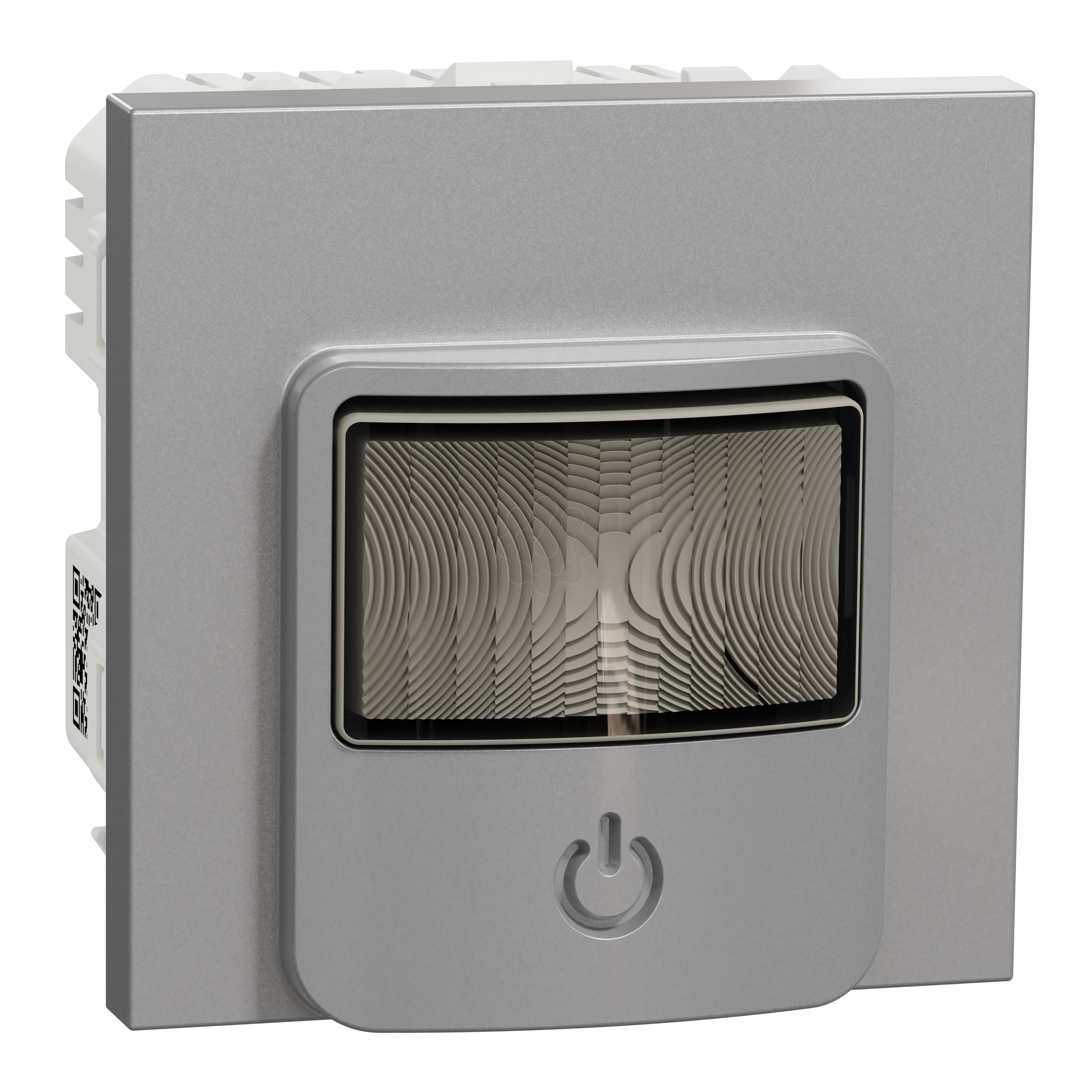 Este sensor de movimento incorpora um botão de pressão 10A. Funciona como um interruptor automático conectado. As configurações são feitas através da app no smartphone. O utilizador pode personalizar o interruptor de acordo com as funções e funcionalidades que necessite no seu smartphone. Suporta cargas como: LED 200W, lâmpadas incandescentes 2200W, lâmpadas de halogéneo 230V 2000W, transformadores electrónicos 1050VA e LFC 200W. O sensor de movimento tem um ângulo de detecção horizontal de 160°. O sensor é de cor alumínio. Conta com todos os requisitos EN e com as aprovações VDE, NEMKO, SEMKO, FIMKO e NF. Inclui funcionalidades como: programação semanal, sensor de movimento ON e OFF e função semi-automática. A função mestre/escravo é possível na cobertura de grandes áreas.