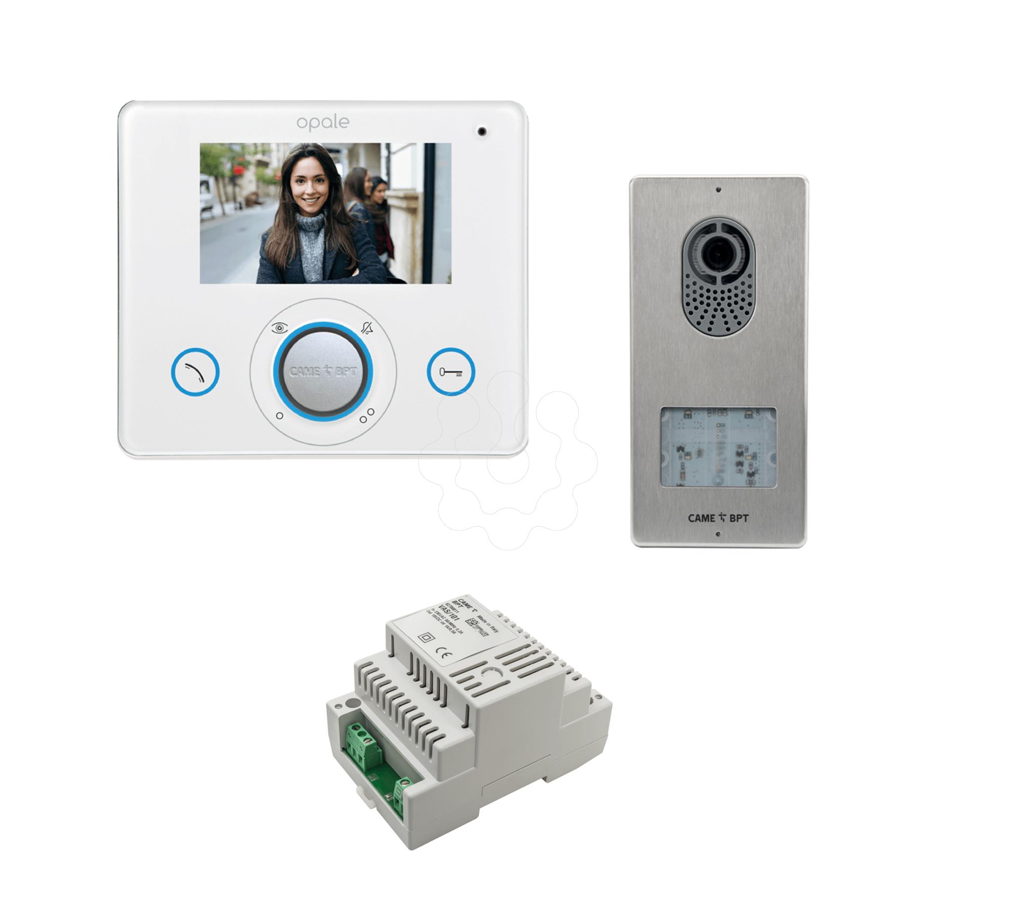 LVKITOPL04 - Kit Videoporteiro 230V - Videoporteiro alta voz com ecrã LCD touch screen de 4,3?, até 10 AUX programáveis, função de atendedor de vídeo, cor branca.Monitor de parede com ecrã LCD touch screen de 4,3?, dotado de interface gráfica. Bem visíveis e retroiluminadas estão as teclas principais que permitem a ativação da comunicação e a abertura da porta, enquanto o anel central permite gerir 2 comandos auxiliares, a autoativação do vídeo das placas botoeiras e a exclusão dos avisos sonoros (com LED de sinalização quando excluído).