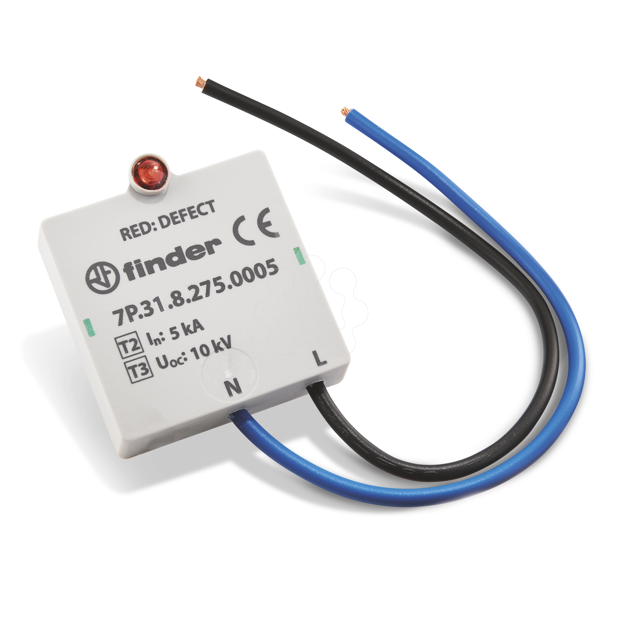 Dispositivo de Proteção contra Surtos Método de montagem: Montagem em superfície/montagem embutida Com contato de sinalização remota: não Número de pólos: 1 Tensão máxima contínua AC: 275 V. Corrente de descarga nominal (8/20) (L-N): 5 kA. Tensão nominal CA: 230 V. Ensaio de categoria tipo 1: sim Nível de proteção L-N: 1.6 kV. Sinalização no nível do dispositivo: Ótico Grau de proteção (IP): IP65 Com filtro supressor de interferências: não