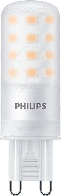 CorePro cápsula LED 230V - LED-lamp/Multi-LED - Consumo de Energia: 4 W - Classe de Eficiência Energética: E. Esta cápsula de tensão de rede de extremidade única para luminárias de base G9 emite uma luz direccional, tornando-a numa alternativa eficaz às lâmpadas com cápsula de halogéneo. É particularmente adequada à iluminação de tarefas em lojas, hotéis e restaurantes e é ideal para candeeiros de secretária e iluminação de arcas. Compatível com equipamentos existentes com suportes G9 e concebida para substituição adaptável de cápsulas de halogéneo, a lâmpada CorePro LEDcapsule possibilita enormes poupanças de energia e minimiza os custos de manutenção, sem comprometer a qualidade da luz.