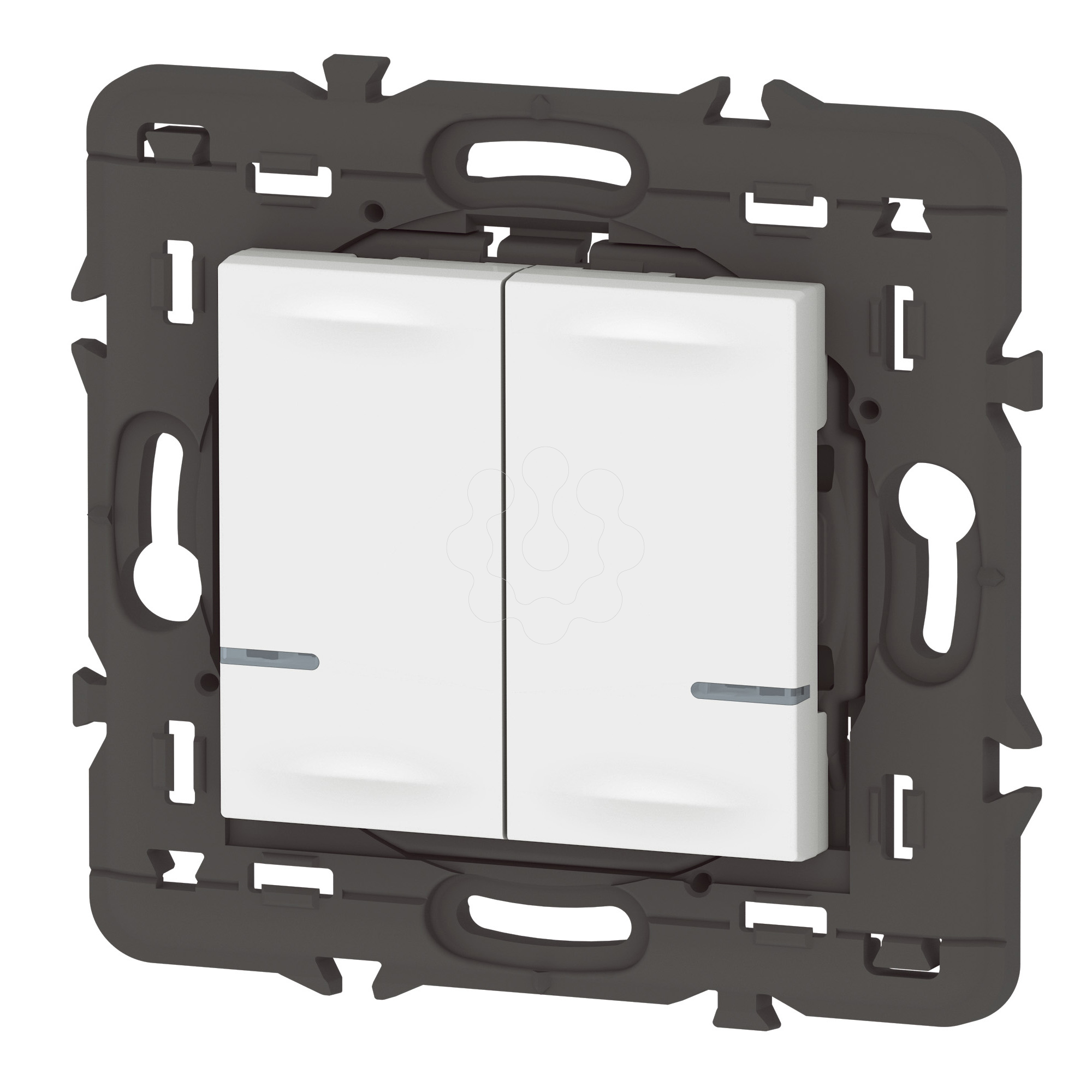 Utilizar para controlar 2 circuitos de iluminação. Emparelhar ao tocar nos produtos conectados selecionados: interruptores, micromódulos, tomadas de energia e saídas de cabos. Fornecido com uma pilha CR2032 de 3 V e com 4 adesivos reposicionáveis para fixação a qualquer superfície. Função LED para indicação de pilha fraca. Fornecido com suporte e quadro de acabamento. Fornecido com garras, capa de proteção para obra, suporte e quadro de acabamento.
