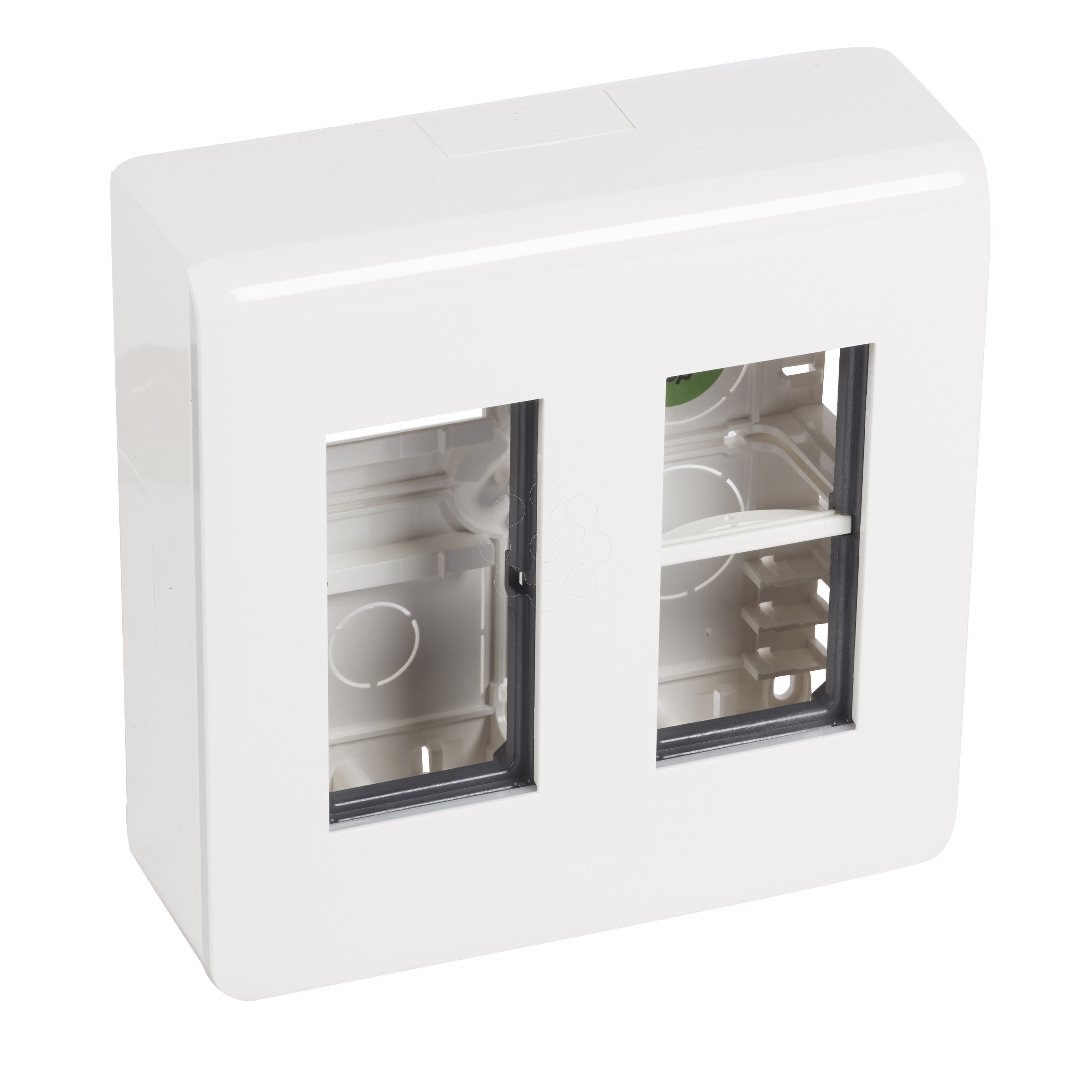 Kit preparado para receber mecanismos Mosaic™. Para instalação saliente (por ex.: tubos embebidos ou à vista, molduras, calhas técnicas, …). Equipado com: - caixa saliente com entradas amovíveis (topo, basee laterais) com pré-cortes para molduras 40 x 20 mm, - suportes de 4 módulos independentes para instalação rápida (sem ferramenta) dos mecanismos Mosaic™ (fornecidos com 2 parafusos opcionais), - separadores amovíveis para integração de mecanismos em postos simples, - quadro de acabamento Mosaic™ cor branco- separadores de correntes fortes / fracas,