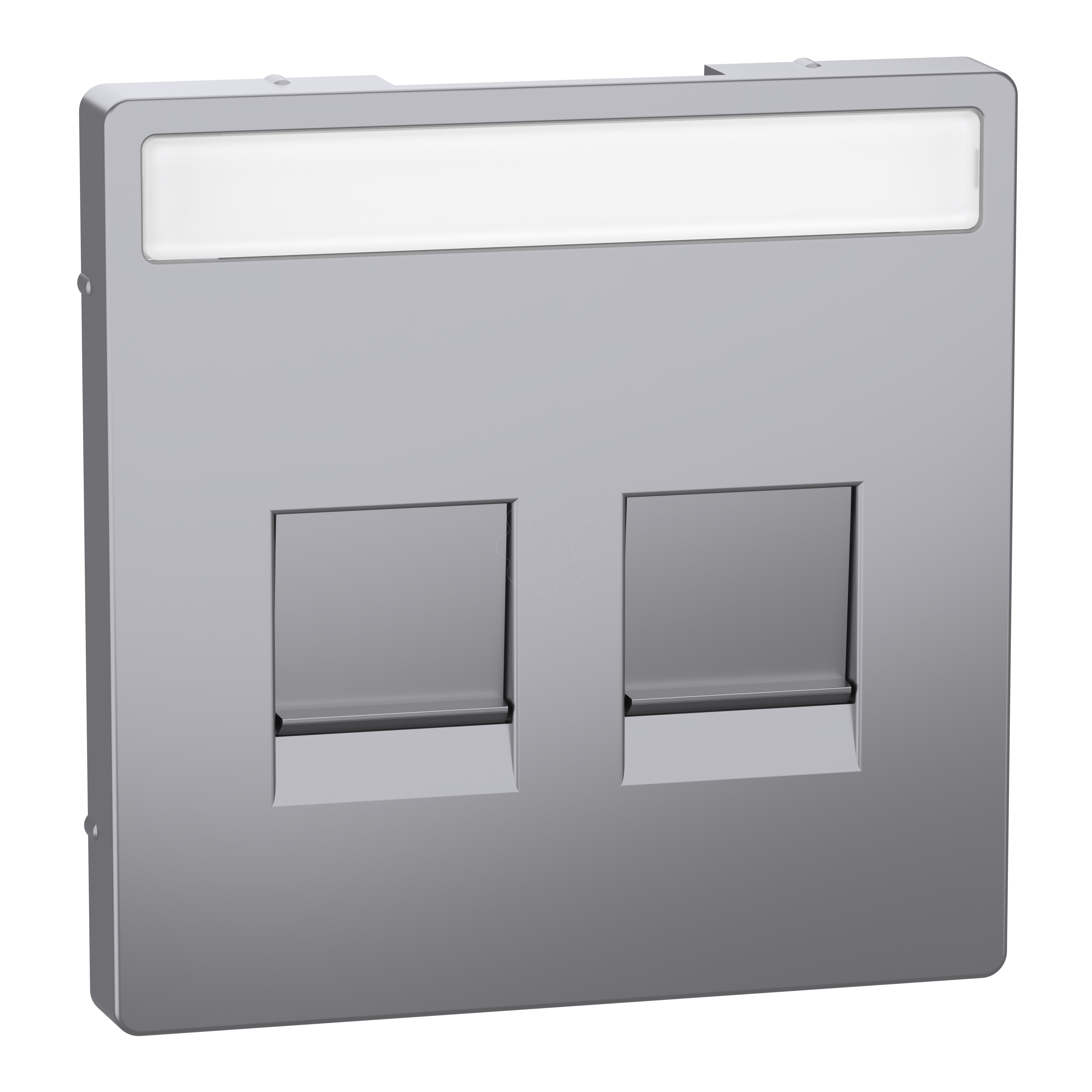 Cen.pl. f. 2-gng modular jack w. label fld & dust slide, ss., Sys.Des.