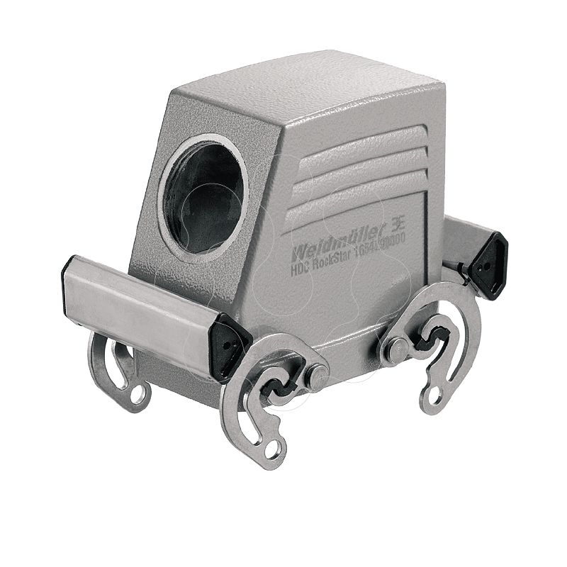 Carcasa (conectores industriales), Entrada de cable, lateral, Caja de conector, Enclavamiento lateral en la parte superior, Grupo: 4, IP65 (enchufado). Gracias a una aleación especial para moldeado a presión y a un sellado aplicado en varias capas, las cajas están perfectamente protegidas.