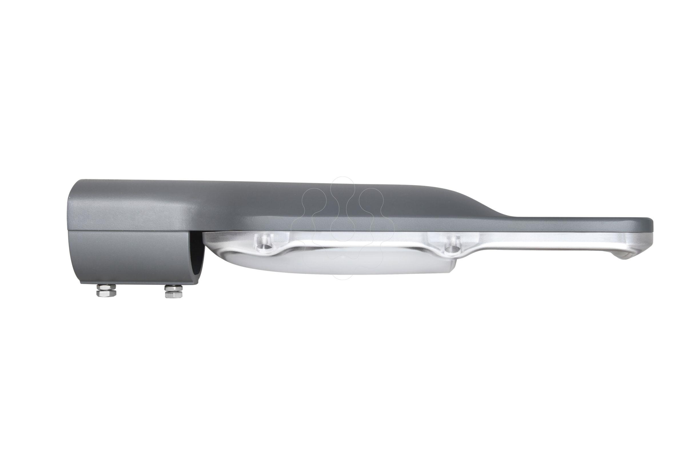 Ledinaire StreetLight, 54 W, 6302.2 lm, 4000 K, CRI70, Classe de segurança II, IP65, SRG4-4. Corpo em alumínio fundido em molde, Cinza escuro, Unidade de fonte de alimentação (aceso/apagado), 6302.2 lm, 54 W, 117 lm/W, 4000 K, (0.3743 / 0.3743) SDCM 5, CRI70, Proteção contra penetração de pó, à prova de jato, 2 J reforçado, Classe de segurança II, Nível de proteção contra sobretensão da luminária até 4kV no modo diferencial e 4kV no modo comum, Cabo de 0,5 m sem ficha