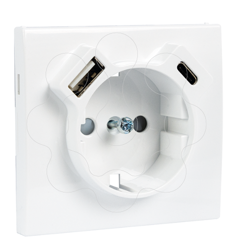 CENTRO PARA TOMADA SCHUKO + USB TIPO A E TIPO C PRETO MATE