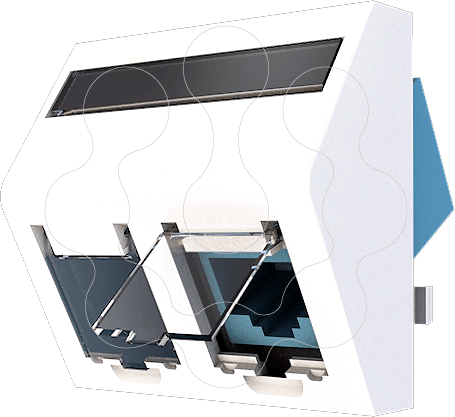 Módulo de aparelhagem 45x45 - Tomada Dupla angular RJ45 Cat 6 com a ref de catálogo, 745-LAN-ANG, um produto JSL pertencente à família de produtos: Equipamentos Terminais da gama 45x45