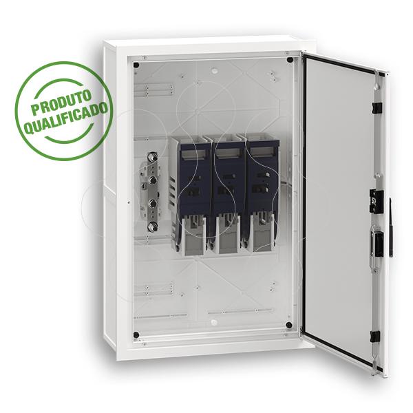 Produto Qualificado pela E-REDES de acordo com a DMA-C62-807/N. Equipado com 3 Interruptores Seccionadores Fusível (ISF1-2) e base neutro seccionável para ligação de condutores preparados. Inclui fechadura escamoteável selável, com canhão da EDP2 (cód. 002142).