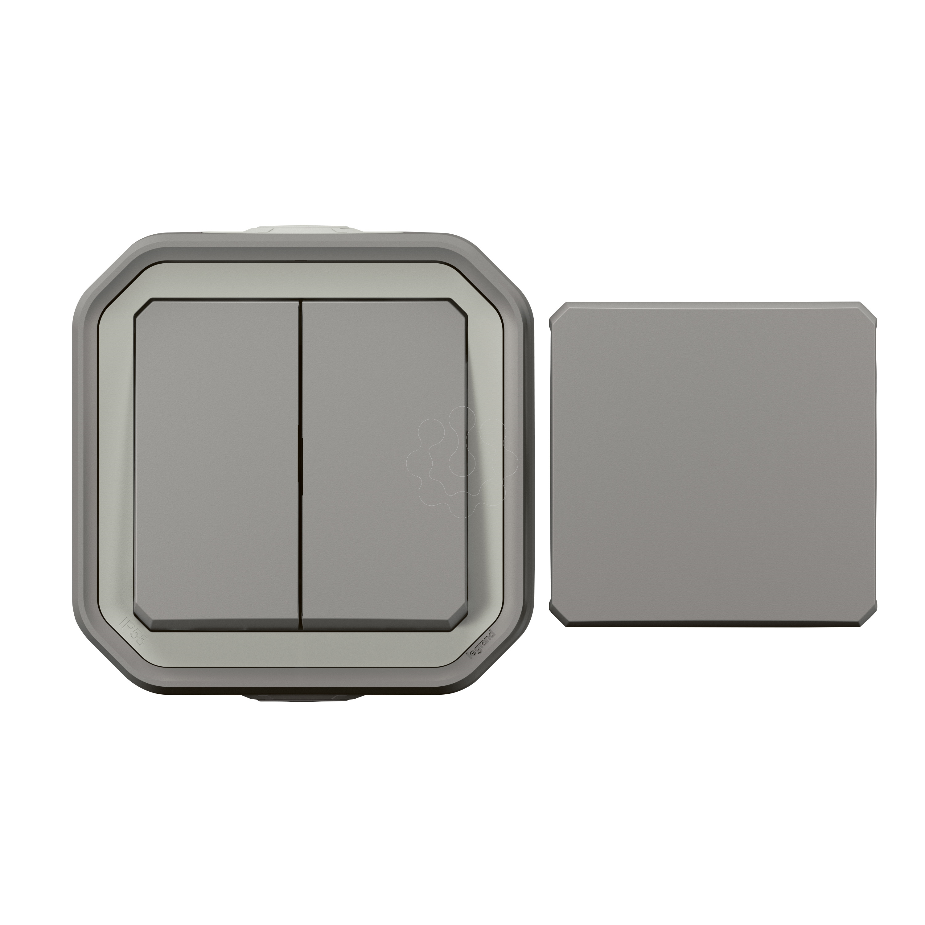 Plexo IP 55 monobloco saliente - Mecanismo Multifunções reversível, Cinzento