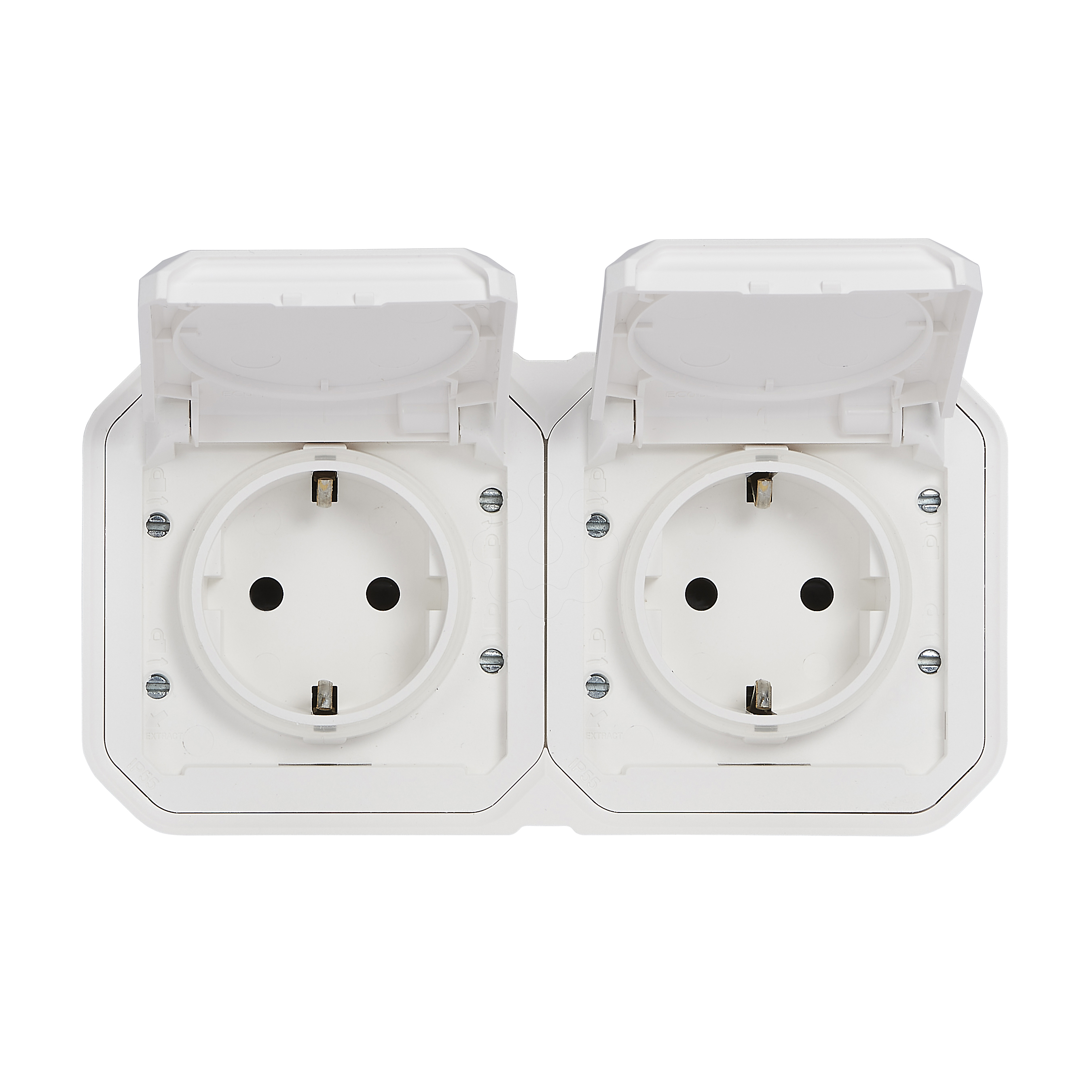 Plexo IP 55 monobloco saliente - 2 x 2P+T Schuko pré-cablada, Horizontal, Antra.