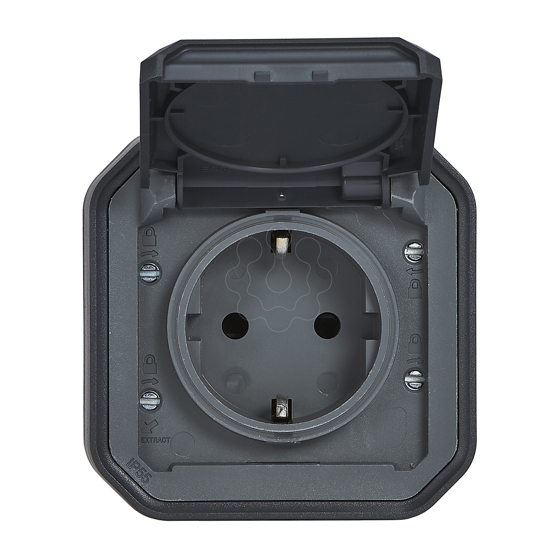 Plexo IP 55 monobloco saliente - Tomada 2P+T Schuko, lig. Automáticos, Antracite