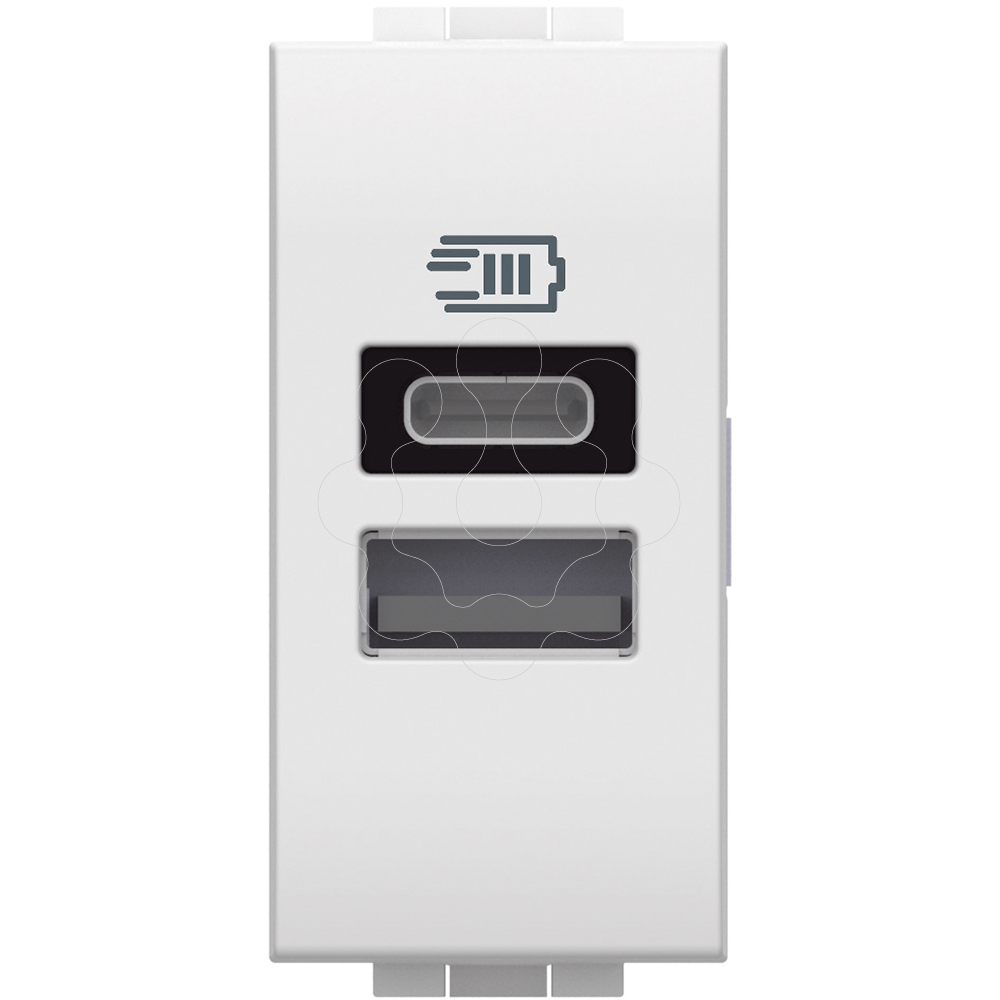 Livinglight - Tomada carreg. USB 1 Tipo-A + 1 Tipo-C (3 A) - Branco, 1 módulo