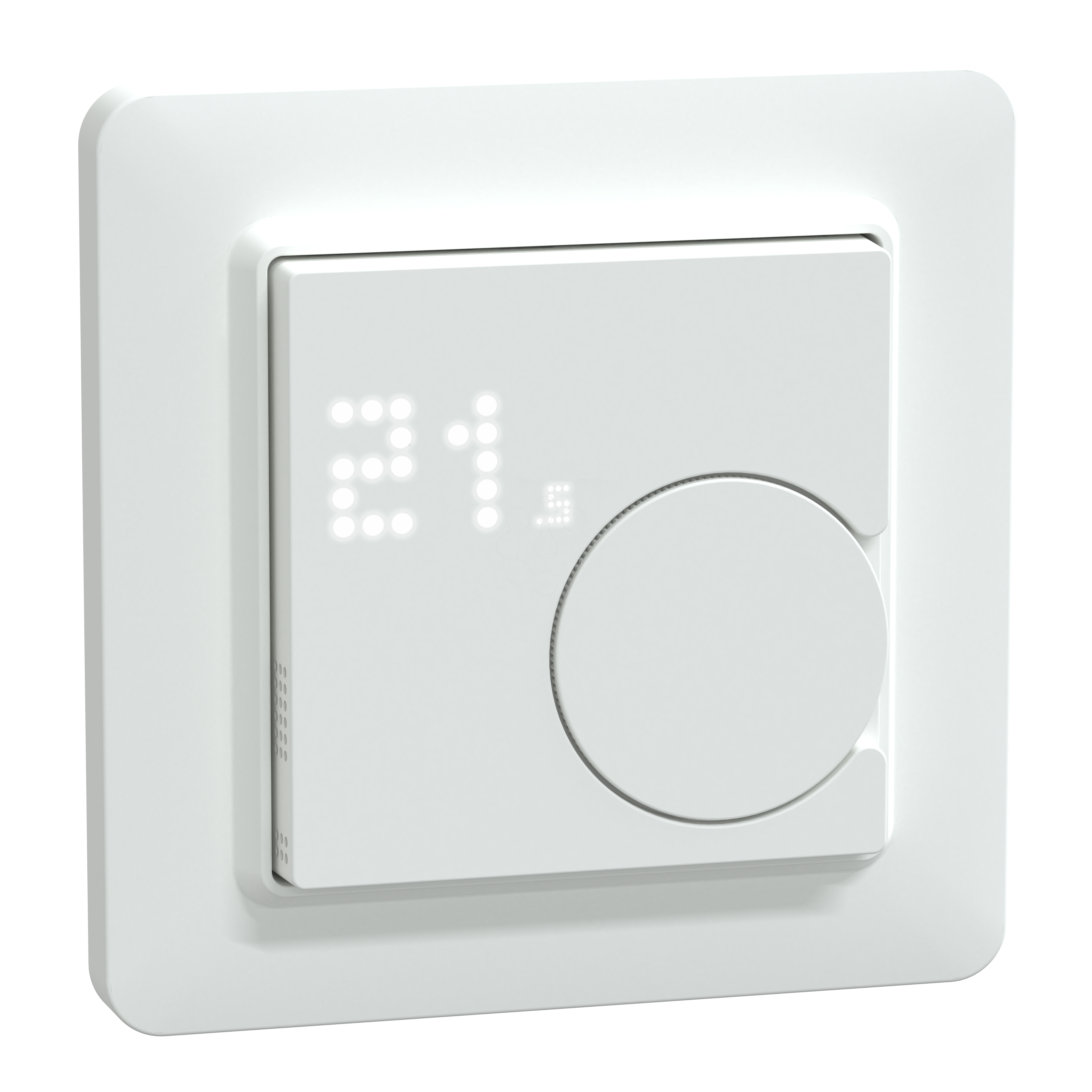 Com o Termostato, 2A Wiser de encastrar, pode controlar a temperatura interior. Este produto é compatível com um relé 2A para sistemas hidrónicos (radiadores hidrónicos, bombas de calor, válvulas motorizadas). Protocolo de comunicação zigbee, integrado no sistema residencial Wiser. Funciona como controlador de temperatura da divisão para aplicações hidrônicas. O dispositivo funciona em aplicações hidrônicas de aqucimento e arrefecimento. O dispositivo é compatível com caldeiras a óleo, caldeiras a gás e bombas de calor. A entrada universal permite-lhe poupar energia quando não está ninguém na divisão, em combinação com um sensor de proximidade. Ligação de termóstato inteligente ou como dispositivo autónomo com um ecrã táctil fácil de configurar. Este dispositivo é fácil de instalar e configurar com os passos no ecrã local. Também está disponível o acesso remoto e a programação fácil com a aplicação residencial Wiser. O Produto deve funcionar com uma potência de entrada de 230VAC monofásica +/- 10% a 50-60Hz. O consumo de energia em estado de "Pausa" (sem acionamento de carga) deve ser inferior a 0,5 W. Como o dispositivo é de 2A, fornece uma saída sem tensão compatível com válvulas NC e NO ou outras cargas até 2A resistivas. A sua frequência de transmissão é de 2,4 GHz e a distância de funcionamento é de 30 m em espaço aberto. O aparelho pode ser instalado numa caixa de parede. As dimensões são (A) 73mm x (L) 73mm x (P) 43mm. A cor do produto é Branco brilhante RAL 9003. Grau de protecção IP30. A embalagem inclui o termóstato e um quadro decorativo.